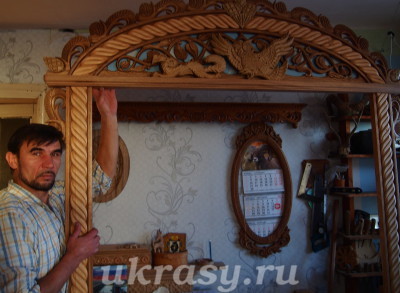 Заказать красивые деревянные наличники вы можете в нашей мастерской "Амурские украсы". Сделаем либо по вашему эскизу, либо разработав 3D-модель в нашей мастерской, по вашим или нашим эскизам! Перед мастерской стоит задача сделать эксклюзивный резной наличник из ценных дальневосточных пород древесины: орех Маньчжурский, бархат Амурский, сосна Корейская(кедр). Работа интересная, самим хочется увидеть, что получится, ведь эскизы и 3D-модели не передают всю красоту, глубину и цвет текстуры ценных видов древесины! Все готово для творческого "полета")))! Работа в нашей мастерской идет полным ходом! Что было сделано? Отмерили и распилили пиломатериал, склеиваем щит для резьбы панно-навершия: Сборка стоевых деревянного наличника: Работа над созданием резного наличника с панно из массива ореха идет! Работа идет полным ходом! Как будет выглядеть конечный результат вы увидите, если будете заходить в нашу мастерскую! Мастерская "Амурские украсы" желает всем здоровья и благополучия! Здравствуйте, дорогие гости нашей мастерской!!! Сегодня расскажем, что было нами сделано: Резьба процесс не быстрый, потому что все делается вручную! И разметка, и выпиливание, и резьба, что видно из наших фотографий! Поэтому, здесь можно со всей ответственностью сказать, что наш резной деревянный наличник с навершием-панно на межкомнатную дверь является совершенно ручной работой! К тому же эксклюзивной! На щите для панно сделали разметку,т.е. нарисовали шаблоны веток. Просверлили для выпилки отверстия и выпилили ветки на панно: Потом, как выпилили, зачищаем торцы веток, т.е. подготавливаем к резьбе панно. Далее, что бы было наглядно, приложили шаблоны совы и белочки: Здесь мы показываем, как происходит склейка стоевой, на которой будет резная деревянная Веревка: Резьба по дереву: здесь мы закрепили заготовку для верхних Веревочек и начинаем резьбу самой Веревочки, которая украсит наше навершие-панно на наличнике: На основном щите навершия-панно мы сделали разметку фона( нарисовали карандашом), просверлили отверстия и выпилили: Резьба по дереву: подрезаем рисунок панно, ветки: Вот так у нас пока выглядит навершие-панно: Навершие-панно со стоевой наличника с резной деревянной Веревкой: Уже в целом видно, как полный образ будет выглядеть! Будем рады, если вам понравится наша работа и вы пожелаете заказать в нашей мастерской резные деревянные изделия: наличники, мебель, украсы интерьера! Творческий проект в самом разгаре! Сейчас только резьба, резьба и резьба! Выпиливаем сову и белочку из массива бархата Амурского. Чем примечателен этот материал в резьбе по дереву? Тем, что готовое изделие из бархата красивого золотистого цвета, текстура очень ярко выражена, что придает любому резному изделию необыкновенный вид! Белочка и сова будут выделяться на темном ореховом фоне: Обязательно готовую деревянную фигурку прострагиваем: Тут Сова пока одна, а рядом уже сюжет резного деревянного панно: ночная жизнь в Приамурье: Вот такое резное навершие-панно. Тут хорошо видно, что основа панно сделана из массива ореха Маньчжурского, Сова и Белочка из древесины бархата Амурского, Веревки вырезаны из массива кедра : Мы всегда рады своим гостям! Резьба планомерно идет к завершающей стадии, осталось дорезать совсем немного элементов навершия панно! Что было сделано? Вот так, листик за лис