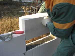 При возведении стен арматура укладывается в проемах и на каждый 4-5 ряд блочных элементовОтзывы владельцев пеноблочных домов