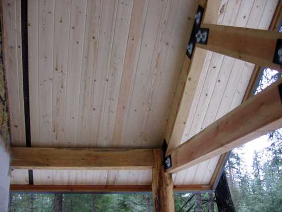 Подшивка софитов вагонкой.