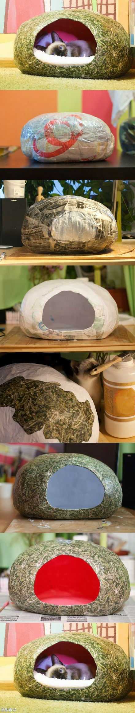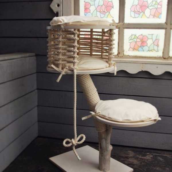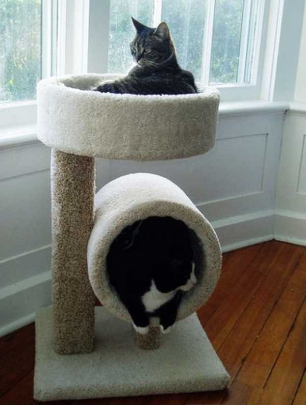 вернуться к меню ↑Строение для кошки может иметь нестандартную форму. Изготовить его можно из подручных средств. Также в нем может вовсе и не быть когтеточки. Рассмотрим несколько таких вариантов: