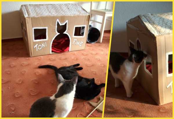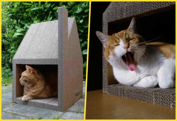 Картон - это материал, который есть в каждом доме и с ним легко работать. Поэтому, домики из картона легко сделать и легко попрощаться с ними, если ваш питомец не оценит по достоинству.