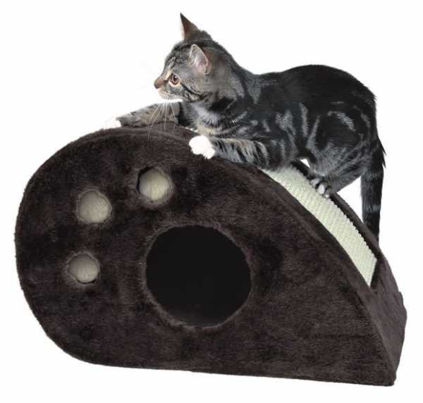 Ругать кошку за то, что она точит когти, бессмысленно. Ведь в дикой природе при лазании по камням и деревьям у животных они стачиваются автоматически. В квартире же у них такой возможности нет, и отросшие коготки им мешают. Обезопасить мебель и дверные косяки от повреждений вы сможете, пристроив к домику настенную, напольную или подвесную когтеточку.