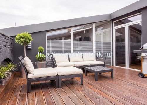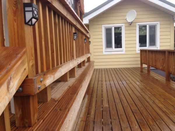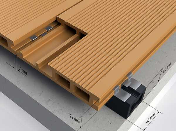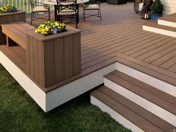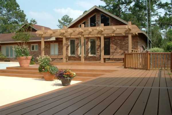Все фото из статьи Если перед вами стоит вопрос, что использовать для устройства напольного покрытия на крыльце, террасе, в беседке или около бассейна, то композитная террасная доска декинг станет отличным решением, так как у этого варианта есть целый ряд преимуществ перед любыми другими аналогами. Самое главное — выбрать качественный материал и правильно произвести монтаж, так как технология укладки имеет свои особенности и любые нарушения приводят к сокращению срока эксплуатации и снижению прочности конструкции в целом. На фото: террасная доска из полимерного композита вначале использовалась для сооружения настилов на пирсах и кораблях, где условия эксплуатации намного сложнее Для начала разберемся, что представляет собой террасная доска из древесно-полимерного композита ДПК, в состав изделия входит древесная мука и полимерное связующее, пропорции могут быть разными, но первого компонента должно быть 50% и более, тогда поверхность будет напоминать натуральную древесину, а не дешевый пластик. Изделия производятся на экструзионном оборудовании под высоким давлением, поэтому прочность готовых элементов очень высока. В первую очередь расскажем об основных характеристиках: Важно! Не следует забывать и о таких положительных характеристиках, как устойчивость к ультрафиолетовому излучению, различным вредителям, а также стойкость к химическим воздействиям. Что касается достоинств, то их очень много, и мы перечислим самые важные и значимые из них: В зимний период поверхность не нуждается в обязательной расчистке Тот факт, что даже мокрая поверхность декинга позволяет передвигаться не поскальзываясь, делает его отличным решением для использования у бассейнов Единственным значимым недостатком является высокая цена материала, его стоимость выше древесины примерно в 5 раз. Бесшовная террасная доска из древесно-полимерного композита обладает всеми преимуществами только при условии квалифицированной укладки. Но не стоит волноваться, процесс довольно прост, нужно знать все его основные особенности. Инструкция по данному этапу работ выглядит следующим образом: Металлическая конструкция – отличная основа для террасы Для работы вам понадобится не только основной материал, но и комплектующие. На схеме ниже показаны все требуемые элементы. Количество комплектующих рассчитывается в зависимости от особенностей конструкции, чаще всего продавец бесплатно оказывает эту услугу, нужно лишь иметь на руках проект При укладке лаг не забывайте проверять их положение с помощью уровня Фиксаторы очень сильно упрощают рабочий процесс Что касается ухода, то никаких особых требований нет, ее можно мыть шлангом и использовать моющие средства без абразивных частиц. Важно! Материал не должен находиться в воде более 4 суток, иначе влага может начать проникать в структуру. Доска из ДПК – отличное решение для любых наружных конструкций, кроме большого срока службы, составляющего 25 лет и более, этот вариант отличает привлекательный внешний вид. Видео в этой статье раскроет о данном виде изделий дополнительную информацию (см.также статью «Пластиковая доска: виды и особенности применения»). rubankom.com Композитная террасная доска — это напольное покрытие, которое используют на открытых площадках. Такой материал не подвержен гниению, но в то ж