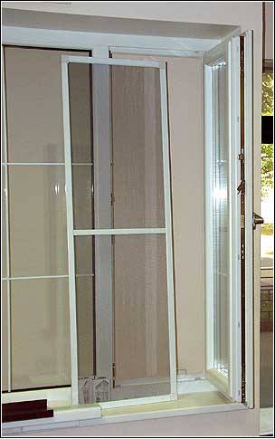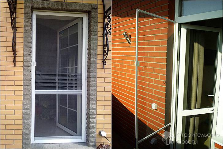Такая конструкция является воплощением соединенных в одно, сетки и рамы двери. Металлопластиковый каркас крепится на дверных петлях проема, и при необходимости может выполнять роль двери или перегородки, когда необходимо обеспечить приток свежего воздуха в помещение.