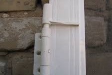 На каркас натягивается сетка и фиксируется мебельными гвоздями или скобами с помощью степлера. Осталось навесить дверь, прикрутив петли. Важно учесть толщину бруска, приняв во внимание, что саморез может его расколоть. Поэтому лучше использовать длинные нетолстые саморезы, просверлив под них в древесине отверстия тонким сверлом. Чтобы дверь не открывалась произвольно, закрепите снизу и сверху мебельные магниты.