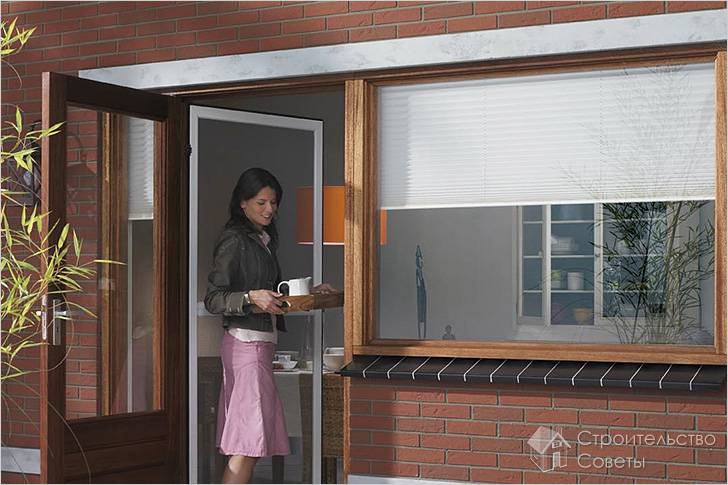 Устанавливать москитные сетки следует не только на окна, но и на балконные двери, а, в случае проживания в частном доме, и на входную дверь.