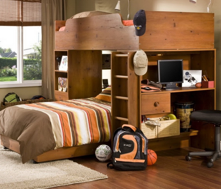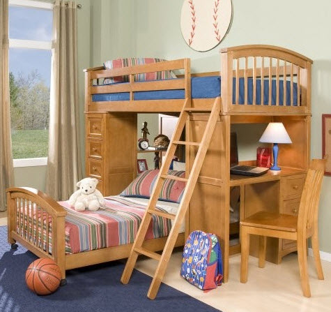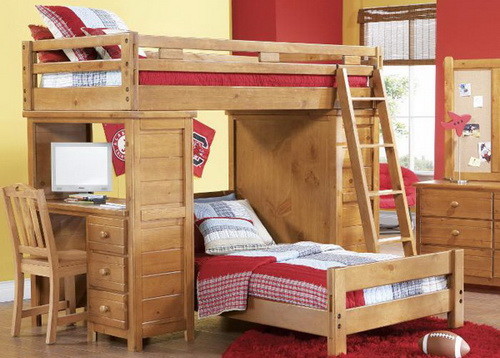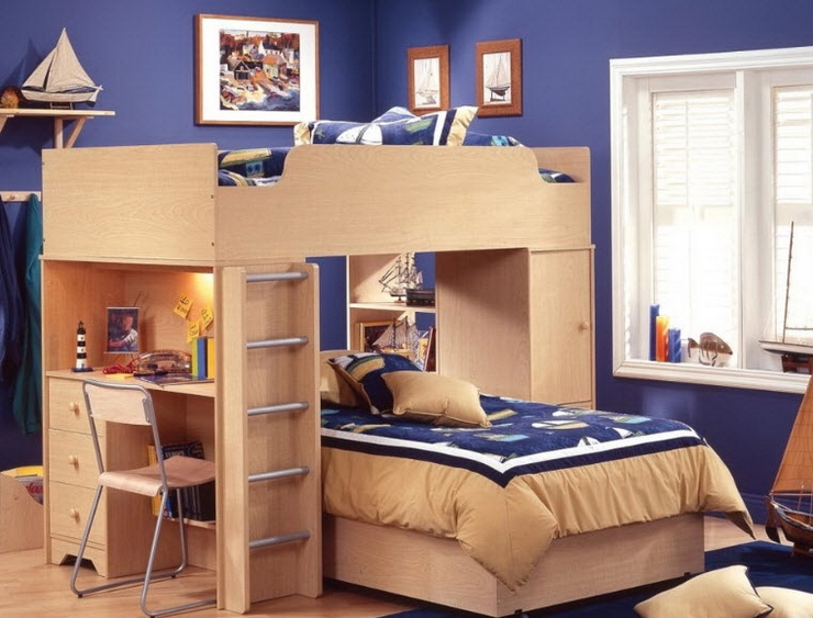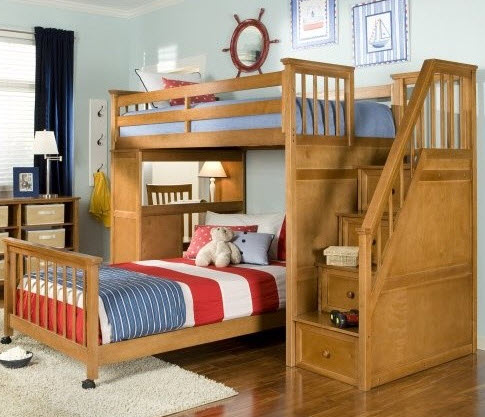 Мир вокруг нас сжимается день ото дня, люди стараются приобрести жильё ближе к месту работы, пойти в бар или ресторан туда, где недалеко, кроме всего прочего, чем ближе расстояния, тем меньше затраты. Именно по этой причине с целью экономии денежных средств и была придумана двухъярусная кровать, но не только из экономии, а скорее из желания добиться большего пространства и комфорта при существующем количестве денег. Такие кровати в большинстве случаев приобретаются для детских комнат, и это очень логичное решение, потому что альтернатива этому не очень радужная, дети должны спать на одной кровати, о чем каждый человек, который прошел через это в детстве скажет, что с легкостью поменяет совместную кровать на любую отдельную. Детям предоставление отдельной кровати запоминается, как и первый автомобиль, первая собственная квартира, посмотрев фото двухъярусной кровати уже нельзя выбросить ее из головы, а дети будут мечтать о ней как о мерседесе. Множество интересных решений существуют в этом классе мебели, и даже если человек никогда не задумывался над тем как может использоваться двухъярусная кровать в интерьере его квартиры или дома стоит посмотреть варианты, так как столь интересных инженерных и дизайнерских решений современная мебель не предоставит. Самая часто используемая двухъярусная кровать из дерева не является единственной и перед тем как покупать стоит узнать как можно больше о предлагаемых производителями вариантах, а они точно стоят того, чтоб о них узнали. Внимательно изучение классификаций кроватей приведет не только к покупке удобного спального атрибута, но темы для разговора, вы с удовольствием будете рассказывать о том, что разработали в этой области инженеры: Классическая кровать с двумя ярусами для сна. Двухъярусная кровать трансформер, с системой скрытия нижней кровати в дневное время, либо трансформирования в учебный стол. Кроме того часто используются небольшие раздвижные элементы в устройстве мебели. Кровать для трех человек представляет собой двуспальную составляющую на нижнем ярусе и кровать для ребенка на втором ярусе, не самое удачное решение, но это все же лучше, чем имея беспокойного ребенка проводить половину ночи у его кровати, так хотя выспаться можно. Двухъярусная кровать со столом это, пожалуй, одно из самых удачных решений и представляет собой только одну кровать на втором ярусе, на первом же расположен стол с ящиками, в общем, максимально приспособленный уголок для выполнения домашних школьных заданий. Актуальность этого вопроса высока из-за количества домашней работы, которую приходится выполнять детям. Детские двухъярусные кровати с элементами игрового процесса, выполненные в виде автомобилей и автобусов, с горкой, установленной на верхнем ярусе, и многими другими не традиционными, но не менее захватывающими решениями, для ребенка вся жизнь игра и такая кровать наверняка повысит общий уровень счастья ваших детей. Детская двухъярусная кровать: как экономить полезное пространство для ребенка. Двух ярусные кровати фото