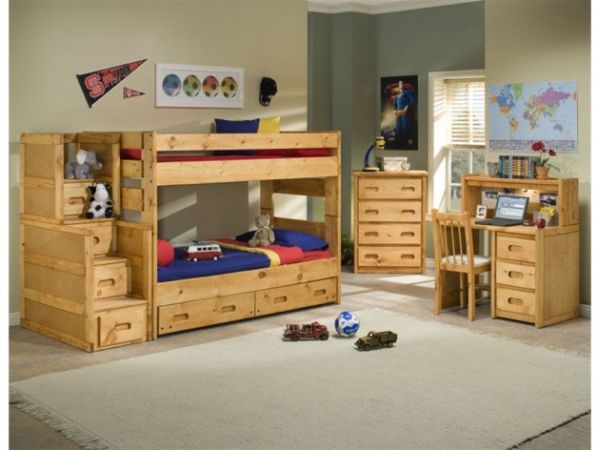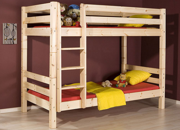 Детская двухъярусная кровать из натурального дерева отлично впишется в любой стиль, начиная от эко и заканчивая стилем поп-арт, для которого дерево можно выкрасить яркими красками.