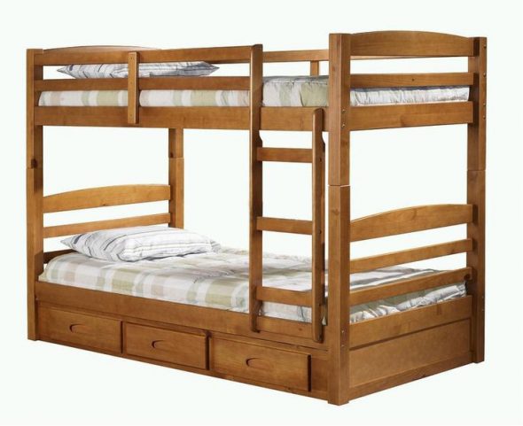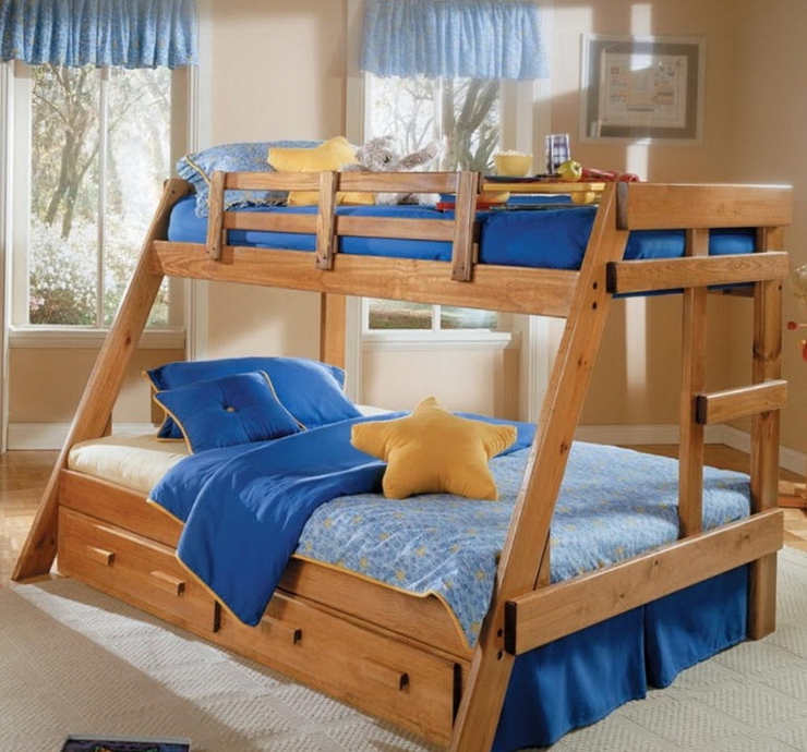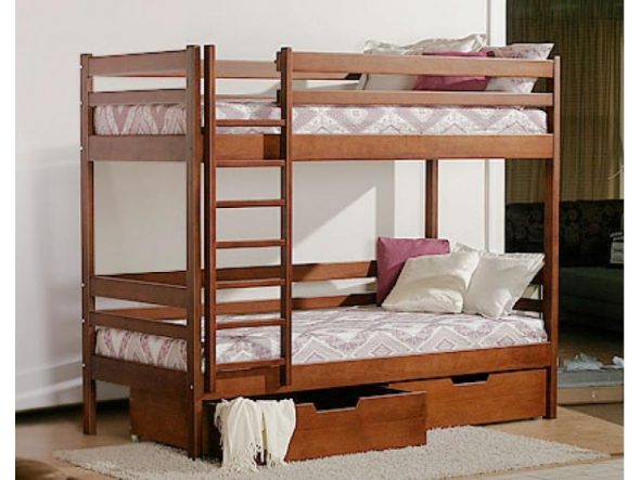 При выборе такой кровати позаботьтесь в первую очередь о безопасности детей: углы должны быть обработаны, закруглены, не должны выступать острые части и крепежные элементы. Все же это один из самых небезопасных видов кроватей.