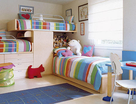 Мало кто может обеспечить своим детям отдельные комнаты для сна и игр. Поэтому, занимаясь оформлением детских, каждый родитель старается совместить все эти зоны в имеющемся помещении. И одним из важных и обязательных вопросов в этом случае является грамотное расположение мебели в спальне. Также следует учитывать, что в отличие от взрослых малыши вряд ли по достоинству оценят пусть стильный и элегантный, но скучный дизайн, что немного осложняет задачу.