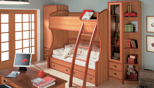 Современная мебель имеет множество идей и вариантов, и выбор зависит от вкуса, площади детской и финансов. В прошлом данные кровати выглядели элементарно – два одинаковых спальных места, одно находится прямо над другим. Сейчас производители мебели предлагают современные, функциональные варианты двухъярусных конструкций, имеющих спальное место на нижнем ярусе, рабочий стол, шкафы, дополнительные игровые модули и над всем этим еще одну или две кровати. Какой ребенок откажется от такого? Для детей это свой мини домик, свой собственный уголок.