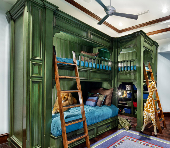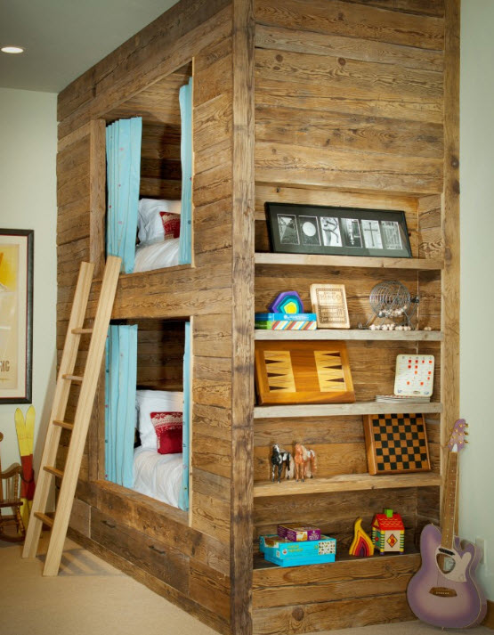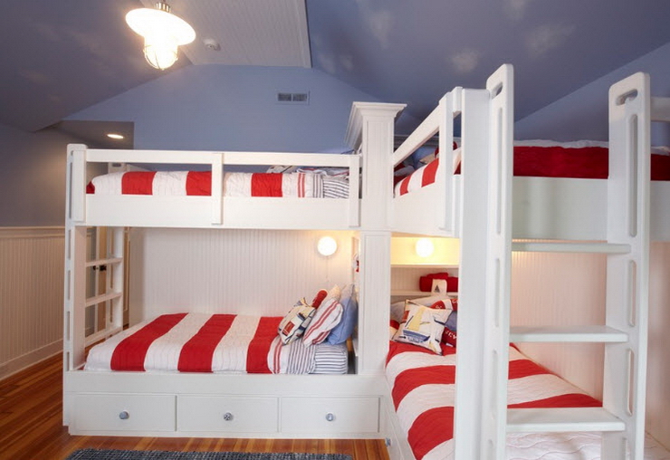 Следует отметить, что двухъярусные кровати популярны не только для обустройства детских в частных домах, но и оформления многоместных номеров гостиниц, коттеджей и курортных комплексов. При этом дизайнеры стремятся создавать уникальные и комфортные помещения, наполненные захватывающей и даже праздничной атмосферой.