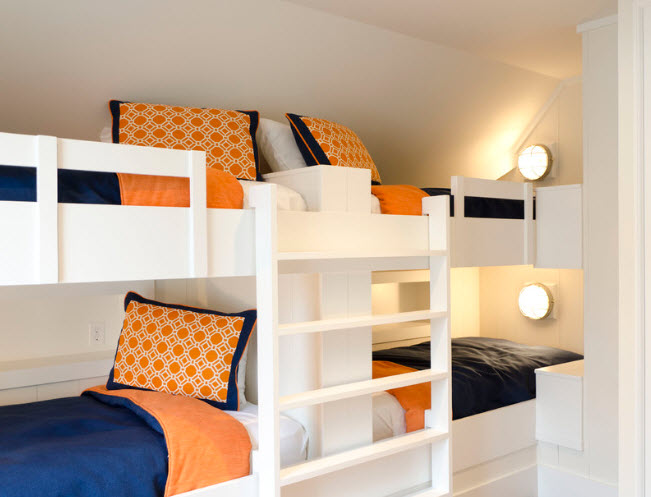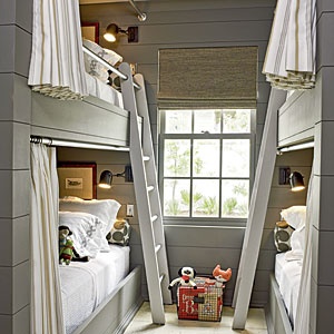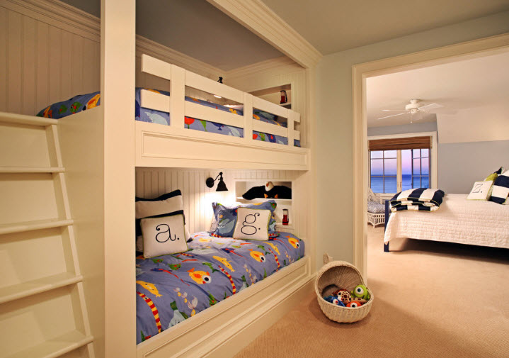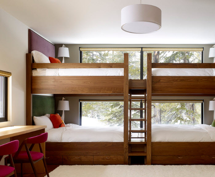 Уютная комната с двухъярусной кроватью и грамотной системой освещения (проект Knudson Interiors)