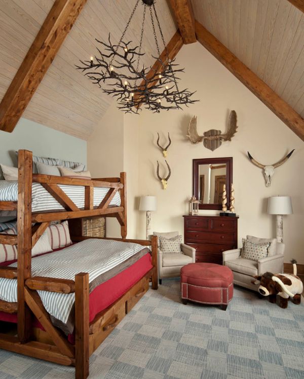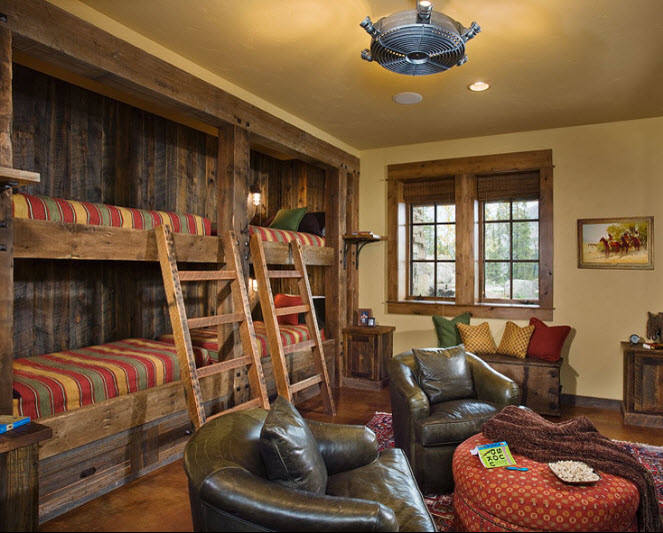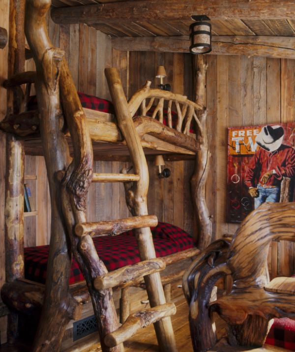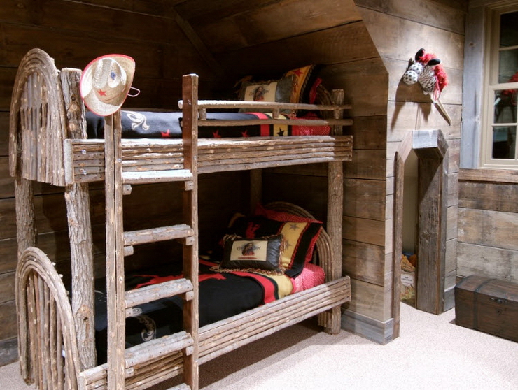 Конструкции верхнего яруса кровати обогатили стильную комнату в деревенском стиле (проект Platinum Series by Mark Molthan)