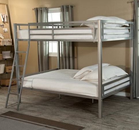 Подходящий вариант двухъярусной кровати из металла в детскую комнату подобрать проблематично: кровать подразумевает современный стиль или минимализм, при этом выглядит не очень эстетично. Нельзя не отметить, что такая кровать надежная и прочная, но при этом достаточно тяжелая, и самим собрать или разобрать ее будет сложно.