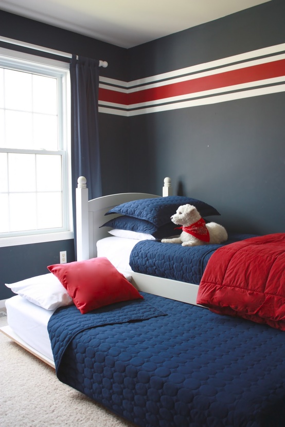 Сине-белое оформление, как беспроигрышный вариант комнаты для мальчиков (проект Lauren Leonard Interiors)