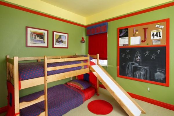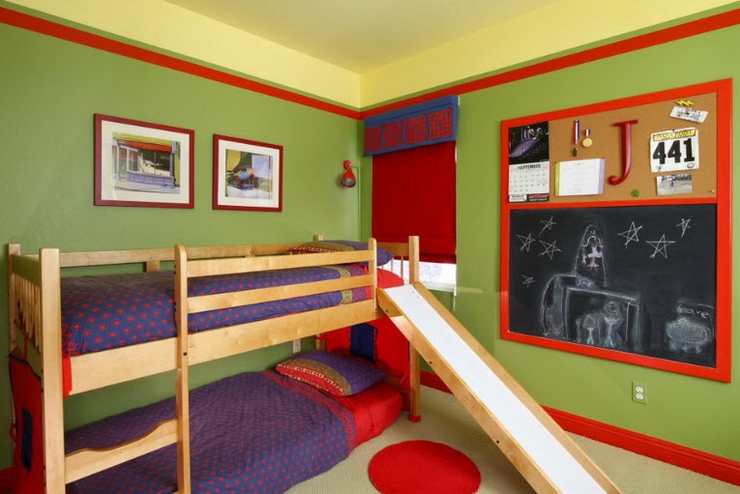 Горка между двумя ярусами детской двухъярусной кровати – отличный способ для быстрого и веселого спуска