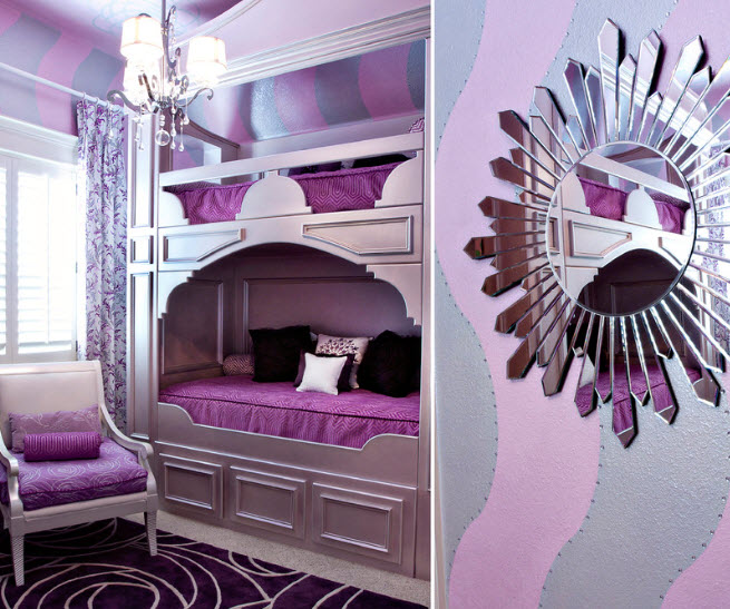 Бело-фиолетовая гамма в комнате для маленьких модниц (проект Karen White Interior Design)