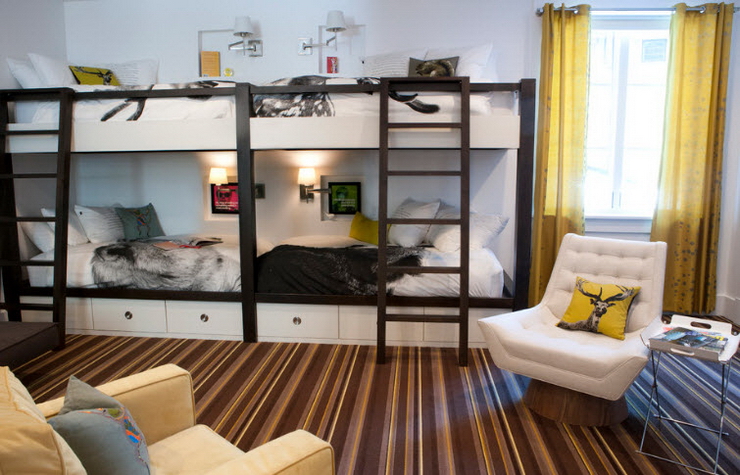 Согласитесь, что многоместные номера, обустроенные с помощью двухъярусных кроватей, является лучшим пристанищем для многочисленной путешествующей компании.