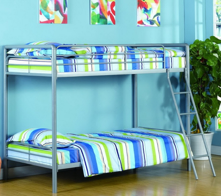 Металлическая двухъярусная кровать в интерьере детской комнаты