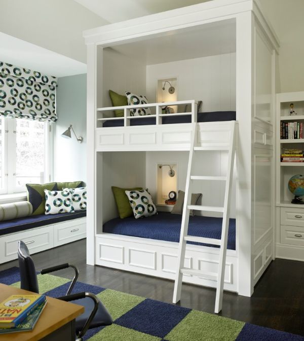 Роскошная двухъярусная кровать для маленькой спальни (проект Karen White Interior Design)