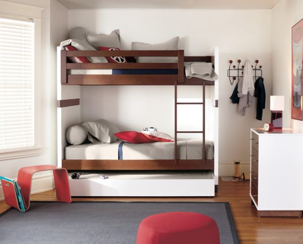 Следует отметить, что область применения современных двухъярусных кроватей не ограничивается только детскими. Эргономичный и стильный дизайн позволяет успешно использовать их и для меблировки комнат для гостей. К тому же, как известно, в каждом взрослом живёт ребёнок, и никто не откажется вновь хотя бы таким способом вспомнить один из счастливых периодов своей жизни.