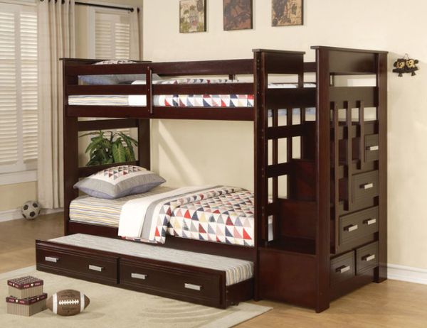 Данные кровати подходят для малогабаритных квартир, а последний вариант особенно удобен для семей, в которых ребенок еще слишком мал, чтобы спать на верхнем ярусе. Такие модели можно найти во многих магазинах.
