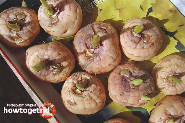 Содержание статьи Гладиолусы не должны зимовать в открытом грунте. От избытка влаги и низких температур луковицы цветов болеют, в них заводятся жучки, и они начинают гнить. Садоводы с многолетним опытом советуют сначала позаботиться о темных сортах, а затем обо всех остальных. Гладиолусы перестают развиваться при низкой температуре. Извлекать луковицы из земли рекомендуют спустя 50 (для ранних сортов – 30) суток после распускания бутонов. Цветы обязательно срезают, оставляя только стебли, чтобы корень растения лучше развивался, и получал максимальное количество питательных веществ. Иногда цветоносы у гладиолусов формируются слишком поздно, ближе к концу лета, поэтому их советуют отламывать, иначе луковица не успеет созреть. Собирают заготовку в середине-конце сентября, когда ночная температура снижается до +10 градусов. Растение плохо переносит +2º, поэтому стараются как можно быстрее выкопать все, даже самые мелкие, луковицы. В случаях, когда даже в октябре погода солнечная и сухая, гладиолусы могут находиться в земле и спустя 40–50 дней после цветения. Особая ситуацияЕсли листья покрылись коричневыми пятнами или быстро засыхают без видимой причины, рекомендуют незамедлительно выкапывать луковицы. Такие симптомы свидетельствуют, что растение было поражено грибком, и спасти посевной материал можно только на начальной стадии заражения. Погодные условияЗемля должна быть не слишком влажной, чтобы не налипала на заготовку, но и не пересушенной. Заниматься уборкой рекомендуют в солнечные дни без осадков, иначе высока вероятность пропустить деток гладиолусов, которые засоряют почву в саду. как вырастить розу из срезанного цветка Подойдут вилы с широкими плоскими зубцами или обычная лопата. как сажать и ухаживать за барбарисом Первый шаг – дезинфекция. Посадочный материал, полученный из зараженных гладиолусов, обрабатывают фунгицидами отдельно от остальных. Для здоровых заготовок используют слабый раствор из марганцовки либо борной кислоты. У луковиц подрезают корни, не слишком коротко, и очищают посадочный материал от земли. Если необходимо, можно сполоснуть под краном или в тазике. Окунуть в раствор на полчаса, а после приступать к сушке. Шаг 1: УльтрафиолетЛуковицы, пропитанные дезинфицирующим средством, пересыпать на противни, засланные бумагой или салфетками, и выставить на солнце. Занести в дом после полного испарения влаги, и переложить в пластмассовые контейнеры или деревянные ящики. Шаг 2: Температурный режимДно емкостей должно быть сетчатым. Луковицы укладывают в 2 слоя, и переносят в помещение для сушки. Обязательное условие – хорошая вентиляция. Заготовка в течение 15 суток должна храниться при температуре +25–30 градусов. Раз в несколько дней посадочный материал необходимо перемешивать, чтобы в нижнем слое не скапливалась влага, и гладиолусы насыщались кислородом. Следующие 1,5 месяца заготовку нужно хранить при +20–23 градусах. Шаг 3: Тщательный контрольКлубнелуковицы рекомендуют время от времени осматривать, убирая больные экземпляры. Рыжеватые или фиолетовые мелкие пятна сигнализируют, что посадочный материал поражен трипсами. Заготовки, которые были выедены изнутри, остается только выбросить. Остальные экземпляры можно попытаться спасти: Чтобы быть уверенным, что жучки не вернуться, можно погрузить все 