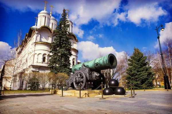 времени. biofile.ru В Древней Руси кремлем называли укрепленную часть любого города. Самый известный кремль — Московский. Над Москвой-рекой уже несколько веков возвышаются золотистые купола соборов и сторожевых башен бывшей грандиозной цитадели русских царей. Сегодня Московский Кремль во всем мире признан одним из главных символов России. Страница 1 из 2 В Древней Руси кремлем называли укрепленную часть любого города. Самый известный кремль — Московский. Над Москвой-рекой уже несколько веков возвышаются золотистые купола соборов и сторожевых башен бывшей грандиозной цитадели русских царей. Сегодня Московский Кремль во всем мире признан одним из главных символов России. Комплекс Кремля: Крепость имеет треугольные очертания и занимает участок земли площадью в 28 гектаров на берегу Москвы-реки. Она укрывает в своих стенах царские дворцы и несколько соборов и церквей. История Московского Кремля неразрывно связана со всей историей Московского государства — возвышением, временами борьбы с татаро-монгольским игом и историей объединения русских земель. Именно из Кремля выступали в походы русские войска, и сюда возвращались они с победой. На кремлевских площадях оглашались постановления правительства. В Кремль устремлялся восставший народ, заявляя о своих требованиях. Кремлевские крепостные стены были построены из красного кирпича в XV столетии. Высота их колеблется от 5 до 19 метров, длина превышает 2 километра. Стены имеют 20 башен, некоторые из них увенчаны высокими шатрами. Главный вход в Кремль — со стороны Красной площади, через ворота Спасской башни. Колокольня Ивана Великого имеет высоту 81 метр, она возведена в 1505-1508 годах, а при царе Борисе Годунове была надстроена двумя ярусами. Это главная дозорная башня Кремля. Рядом с ней можно видеть самый большой в мире Царь-колокол, который отливали в 1733-1735 годах. Его вес — 200 тонн. Неподалеку от него находится еще одно чудо литейного искусства — Царь-пушка калибром 89 сантиметров и весом 40,6 тонны, отлитая в 1586 году. В 1491 году была построена Грановитая палата с прекрасным залом в стиле Возрождения, который и по сей день используется для торжественных церемоний. Сердце Кремля — Соборная площадь. Успенский собор, где венчались на царство русские цари, был возведен в 70-е годы XV века. Благовещенский собор, построенный в 1484-1489 годах, в 1547 был разрушен пожаром, затем отстроен вновь и получил прозвание Златоверхий, поскольку его купола и кровля покрыты золотом. Архангельский собор, усыпальница русских царей, сооружен в русском стиле, хотя обнаруживает в своем облике влияние итальянского Возрождения. Большой Кремлевский дворец построен в 1849 году. Отсюда можно пройти в Теремной дворец, где находились личные покои русских царей. Здание, возведенное в XVI веке, было в следующем столетии расширено и выросло еще на два этажа. После ухода из Москвы французов в 1812 году в Кремле осталось около ста чужеземных орудий. К началу 1819 г. по специальному указу сюда было свезено 875 орудий из разных мест, где шли бои с частями армии Наполеона. Оружие предназначались для музея Отечественной войны 1812 г., который предполагалось организовать в Арсенале. Музей так и не открылся, а пушки разместили на специально построенном для них каменном постаменте, расположенном вдоль фасада Арсенала. Эта коллекция, в которой предст