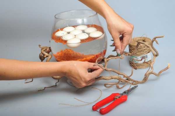 Для того чтобы сделать подсвечник из веточек, нам необходимо: