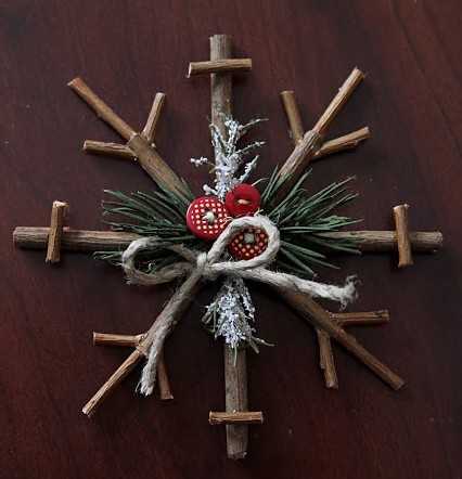 Если вы считаете, что венок — это скучно и банально, или у вас просто остались веточки, можно сделать из них звезды — простая идея для новогодних украшений.