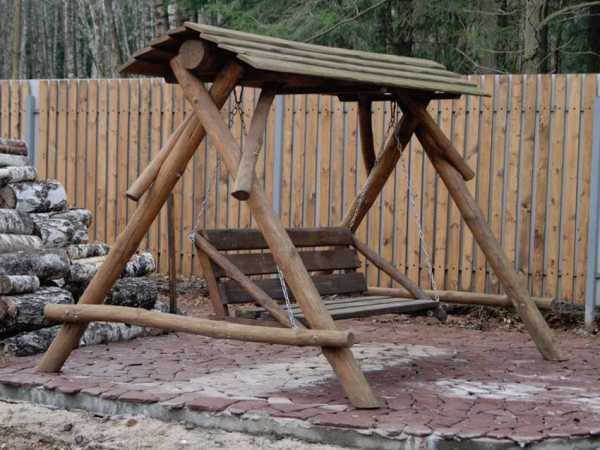 Совет! Чтобы древесина преждевременно не испортилась, стоит использовать для защиты деревянных элементов специальные средства. Также над качелями можно натянуть тент.