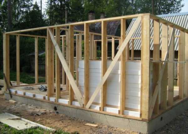 Строительство каркасного дома начинается от нижней брусовой обвязки. Обвязка прочно крепится к фундаменту. Предпочтение отдается древесине хвойных пород.