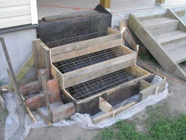 Если входная дверь находится высоко над землей, площадку крыльца надо поднять до ее уровня. Из-за сезонного колебания плотности грунта, лестничная площадка должна располагаться ниже двери на 50–100 мм.