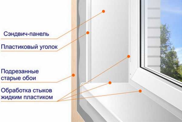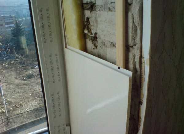 Для этого к откосам крепятся деревянные рейки — сверху, снизу и по середине. Следим что бы эти рейкинаходились в одной вертикальной плоскости. Точно так же крепим рейки к верхнему откосу. А затем к рейкам при помощи жидких гвоздей крепим панели.После того, как панели зафиксированы, пространство между панелями и стеной заделывается монтажной пеной, и в конце крепятся пластиковые уголки, закрывающие пространство между панелью и стеной.