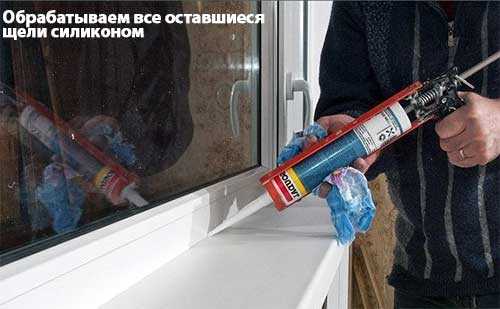 Некрасиво выглядят швы, образующиеся вследствие сопоставления откоса и подоконника, поэтому их замазывают силиконом. Силикон должен быть белого цвета, ни в коем случае не песочного или бежевого.