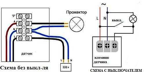 Светодиодный прожекторСхема включения зависит от типа используемого датчика, конкретней: