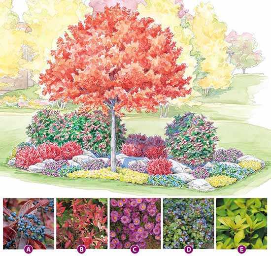 Красный клен. Калина. Вирджиния. Астра многолетняя. Цератостигма. Орегано.