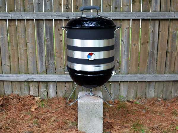 Поэтому емкость должна быть герметичной. Идеальный вариант – гидрозатвор по контуру крышки. Дым (вместе с температурой) находится внутри, по принципу скороварки.