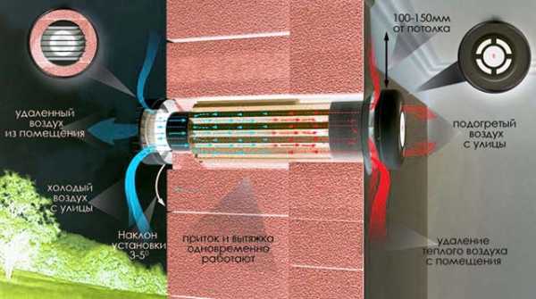 Приточная вентиляция в частном доме, монтируется в стену таким образом: