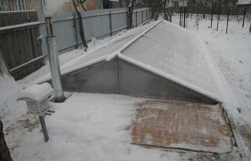 Еще один тип зимней теплицы, предполагающий проведение не малых земляных работ, так как под такую теплицу делается довольно глубокий котлован с укреплением стенок как и для бассейна.Теплица из поликарбоната