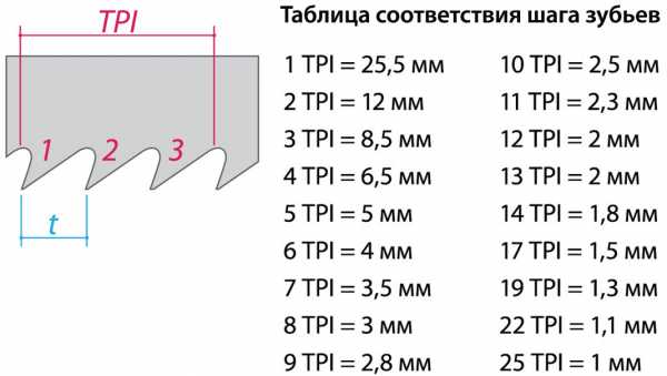 Точность распиловки определяется показателем «TPI»- количеством зубьев на дюйм.