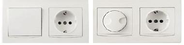 -одинарные розетки "евро" без заземления и с заземлением, сдвоенные, тройные;