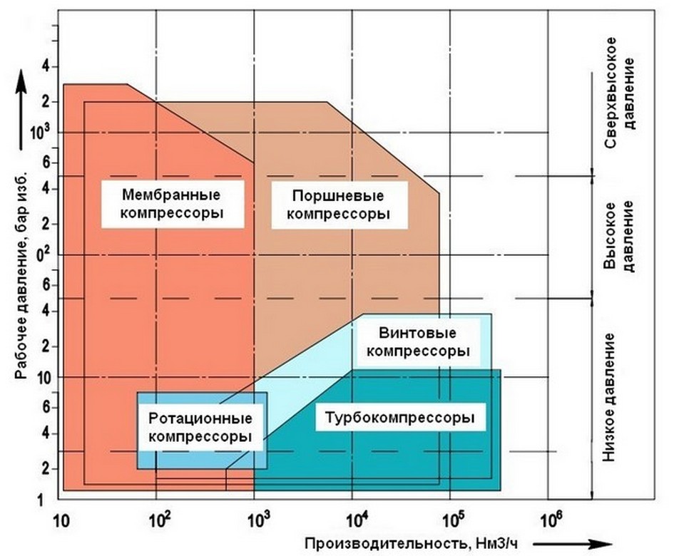 Поршневые — 0…50-60 бар изб (в некоторых случаях и более).