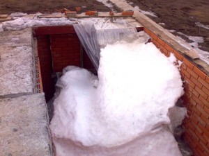 Дождевая и талая вода при минусовой температуре, замерзает и увеличивает объем, а это вызывает ослабление грунта ниже дна котлована даже на глубине 0,5 м. Весной, возможно, придется выбирать грунт, а на его место укладывать гравий или песчано-гравийную смесь или утрамбованный песок слоями. Это приведет к дополнительным объемам работ и затрат. Достаточно эффективного , и при этом не слишком затратного способа защиты от накапления в котловане воды и защиты от мороза к сожалению нет.