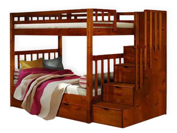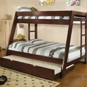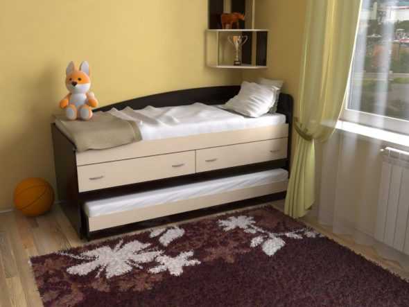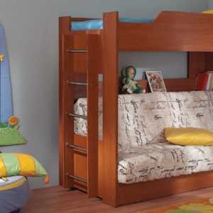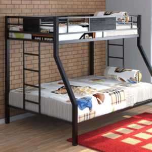 Вид и размер кроватей зависит от предназначения, возраста детей, их предпочтений и других факторов. Спальные места могут отличаться шириной. Она не зависит от возраста ребёнка, так как обычно малыш спит внизу, а его старший брат или сестра на верхнем ярусе. Двухъярусная кровать со встроенным комодом помогает экономить место в комнате Двухъярусная кровать с одним местом для сна используется, если в комнате живёт один ребёнок, но места в ней немного. В этом случае малыш спит наверху, а внизу размещается пространство для игр, шкаф или письменный стол с полками. Двухъярусная кровать с дополнениями используется как игровой домик и полноценное место для сна Если нижний ярус двухместный, на нём могут спать двое однополых детей. Малыши размещаются на нижнем ярусе, а ребёнок более старшего возраста — на верхнем. Двухъярусная деревянная кровать с двойным спальным местом — хорошее решение для размещения троих детей Ребёнка 1–1,5 лет можно класть на нижнее спальное место, но оно должно быть защищено высоким бортиком, чтобы малыш не упал во сне и не испугался. Для того чтобы ребёнок не упал во время поднятия или спуска на второй ярус, необходимо снабдить лестницу перилами, а на ступеньки наклеить противоскользящие наклейки. Спальное место также должно быть защищено высокими бортами. На верхнем «этаже» рекомендуют класть ребёнка, если он сам уже научился подниматься и спускаться по лестнице. Двухъярусная кровать с высокими бортами защищает детей от падения Двухуровневые кровати бывают разных конструкций. Разборная двухъярусная кровать, которую можно превратить в две одноярусные конструкции Неразборная двухъярусная кровать — удобный вариант для детей Двухъярусная кровать чердачного типа со шкафом и письменным столом подходит младшим школьникам Чердачная двухъярусная кровать со свободной нижней зоной — отличное приспособление для игр малыша Выдвижная двухъярусная кровать с ящиками для белья позволяет разместить двоих детей Некоторые модели детских двухъярусных кроватей изготавливаются длиной 150–170 см. Иногда это не очень удобно, так как родители часто укладывают малышей и ложатся с ними рядом. Для большей экономии лучше изготовить кровать длиной около 180 см. Кровать-чердак нельзя назвать полноценной двухъярусной моделью, у неё только одно спальное место. При этом такая конструкция очень нравится детям, даёт простор их фантазии и дополнительное место для игр. Двухъярусная деревянная кровать с четырьмя спальными местами подходит для размещения гостей Белая кровать-чердак с выезжающим столиком — отличное решение для экономии места Двухъярусная кровать с двойным спальным местом подходит для детей и взрослых Двухъярусная деревянная кровать, выполненная в виде дома, понравится мальчикам Двухъярусная кровать с двойным спальным местом и выдвижными ящиками позволяет разместиться всем членам семьи Двухъярусную кровать можно совместить с диваном Двухъярусная кровать розового цвета понравится маленьким принцессам Двухъярусная кровать-чердак подходит для сна наверху и отдыха на первом ярусе Металлические двухъярусные кровати самые прочные Двухъярусная деревянная кровать с тремя спальными местами — выгодный вариант для многодетной семьи Выдвижная кровать с подиумом понравится маленькой моднице Двухъярусная кровать 