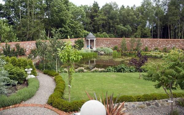 Английский стиль ландшафтного дизайна хорошо может дополнить водоемЗагородный стиль