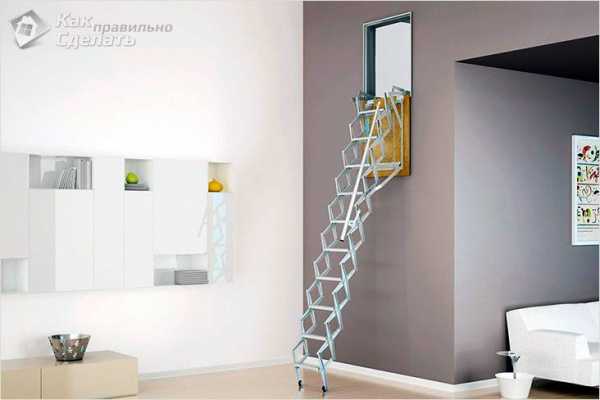 Можно приобрести раскладную чердачную лестницу, закрепленную на крышке люка. Очень удобно, если чердачное помещение регулярно используется.