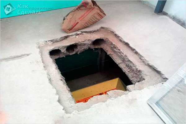 Отверстие под люк в бетонном перекрытии следует усилить железными уголками.