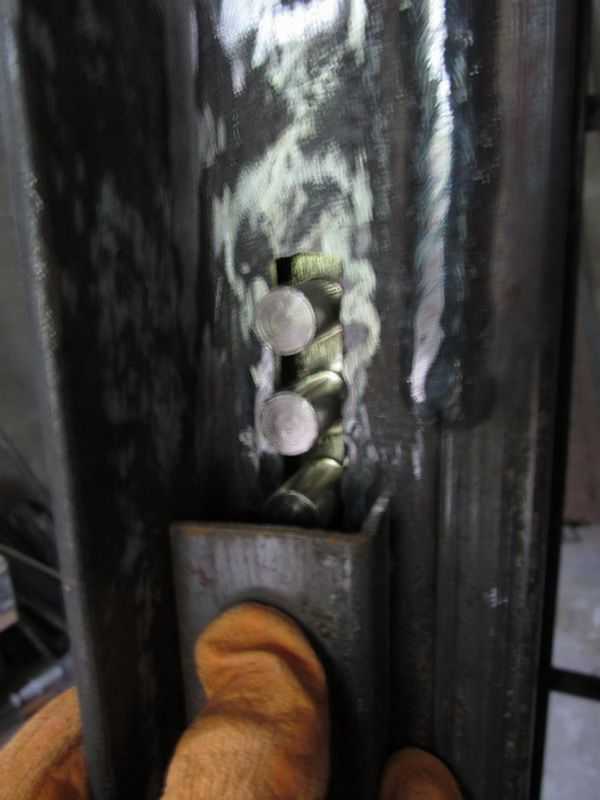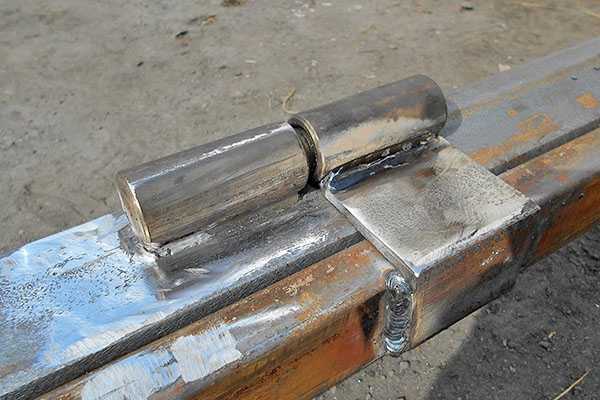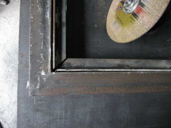 Фактически дверной блок в этом случае может быть использован как шаблон для выкладки деталей и фиксации каркаса перед сваркой. Первым делом во время сборки проводится сварка дверных петель. Детали подгоняются так, чтобы сверху зазор между блоком и самой дверью был 2-3 мм, а вот снизу зазор нужно сделать больше — до 3-5 мм. При использовании в конструкции простых гаражных петель сваривать их нужно сверху рамы и блока. Для петель скрытого монтажа нужно предусмотреть дополнительное пространство в дверном блоке. Для этого есть смысл сделать сторону крепления петель из трубы большего сечения. Зазор снизу в 5-7мм между дверью и блоком нужен потому что бронированная дверь своими руками сваривается из металла 3-4 мм, и вес двери со временем делает выработку в петлях, постепенно опуская дверь.
